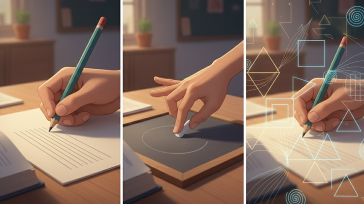 Even if mistakes occur, there is no overwhelming pressure. The beauty of this method is that even invisible endpoints are joined intuitively; this is the secret to learning through geometric forms.