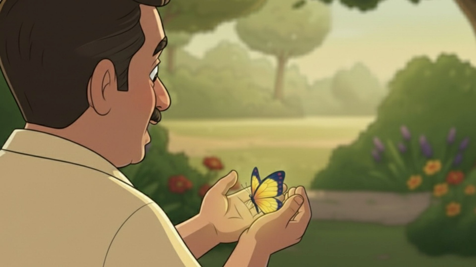 Popatlal looked. His hands still cupped the butterfly. It tried to flutter, but couldn’t. Its wing colors had faded. Popatlal realized what a big mistake he had made.